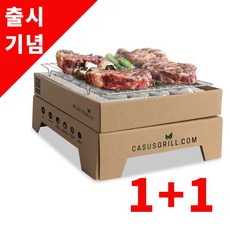 꾸버스 1+1 투타임그릴 바베큐 캠핑 야외 숯불 일회용 휴대용 석쇠 불판 화로대, 1개