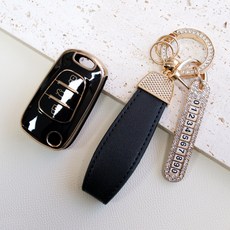 트니르 기아 현대 호환 M타입 폴딩키 케이스 아반떼 K5 K7 모닝 레이 포터 쏘울 tpu 번호판 스트랩 골드라인, 큐빅오링, 블랙