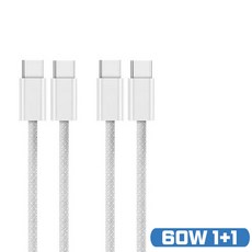 애플 정품 호환 C to C PD 60W 고속 충전 케이블 아이패드 아이폰 지원, 화이트, 2개, 1m