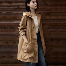 POMTOR 여성 캐주얼 코트원피스 얇은 기종 길다 트렌치 코트