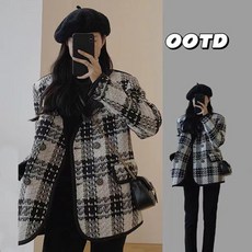 루즈핏 빅사이즈 여성 체크 자켓 모직코트
