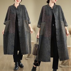 해피유통 가을 배색 워싱 구제 데님 빈티지 캐주얼 오버사이즈 트렌치 롱 코트 GJL002