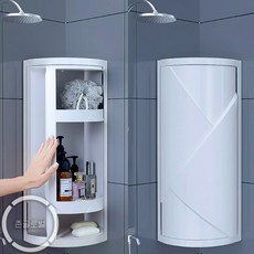 회전식 코너 수납장 무타공 접착식 화장실 욕실 선반 수납 정리 (주)존글로벌, 1단
