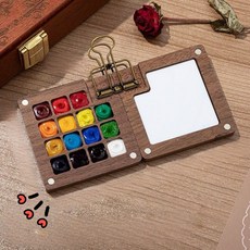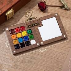 미니 팔레트 파레트 수채화 유화 물감 아크릴 스케치 휴대용 미술, 15색 우드 레트 + 클립 + 미니 스케치북