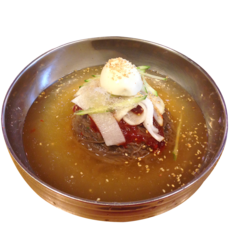 면: 김치냉면에 사용되는 면은 보통 밀가루로 만든 면이며, 찬물에 삶아 차갑게 준비합니다.