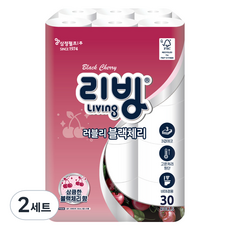 리빙티슈 3겹 러블리 블랙체리 고급롤화장지, 2세트, 30롤, 30m