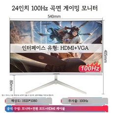 컴퓨터 모니터 데스크탑 24인치 2K144HZ 곡면 27 HD 모니터링 1K 사무실 화면 1080P 게임 무한, 표준 구성, 24인치 1K 100Hz 곡면 화이트
