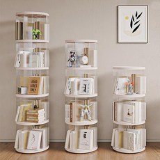PawJoy 회전책장 고급스러운 회전 책장 360도 대용량 유아책장 조립식책장 책꽂이 원목 진열장, 5단, 원목 모델 5단