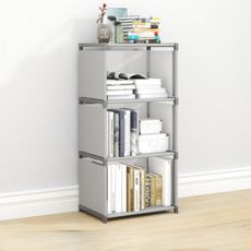 조립식 다용도 스탠딩 책꽂이 수납 선반 정리함, 그레이, 3단