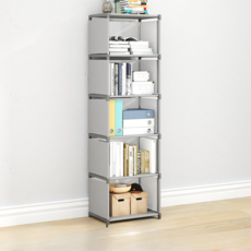 조립식 다용도 스탠딩 책꽂이 수납 선반 정리함, 그레이, 5단